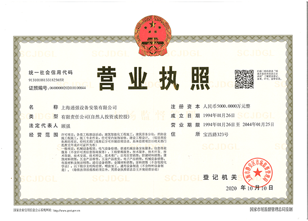上海通強(qiáng)設(shè)備安裝有限公司注冊(cè)資金2000萬(wàn)元,資產(chǎn)總量為100000萬(wàn)元的專業(yè)設(shè)備安裝公司,公司專業(yè)從事工業(yè)與民用建筑的設(shè)備安裝、非標(biāo)設(shè)備的制作、鋼結(jié)構(gòu)制作安裝、中央空調(diào)系統(tǒng)的安裝,水電及管道的安裝。經(jīng)過20多年艱苦創(chuàng)業(yè)現(xiàn)已成為一個(gè)具有國(guó)家二級(jí)安裝資質(zhì),獲得上海市“重合同,守信用”的施工單位。